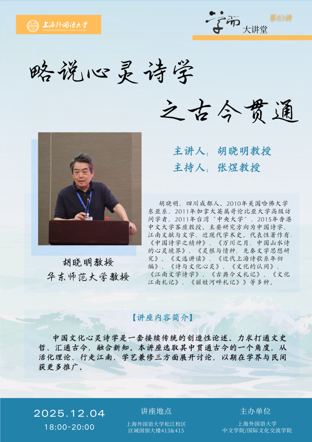 中国文化心灵诗学是一套接续传统的创造性论述。力求打通文史哲、汇通古今,融合新知。本讲座选取其中贯通古今的一个角度,从活化理论、行走江南、学艺兼修三方面展开讨论,以期在学界与民间获更多推广。