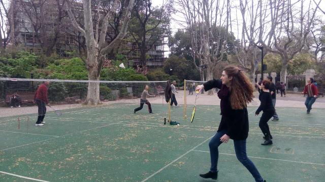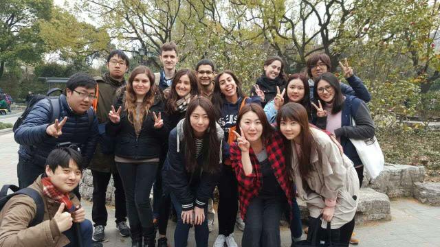 学生们经过前期精心的准备,在会话老师的带领下如期来到鲁迅公园。学生以小组为单位分别活动,各组主动与公园内活动的大爷大妈交流,并积极加入某一项活动。他们有的加入了太极拳组,有的加入了羽毛球组,有的加入了交谊舞组,有的跟随大爷们在水泥地上挥毫练习书法。最后,每组都会选定一个人,以采访的形式与公园内的人群进行了深入交流,充分了解此活动,配以录音、照片,将所见所闻整理成报告,准备在下节课上在班级内做汇报交流。