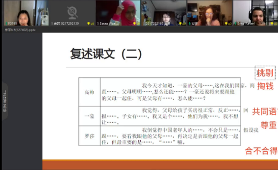 在疫情防控时期,国交学院充分考虑国内外学生的不同情况,开设了线上班和线下班;其中线上班进一步分为上午班、下午班、晚上班和周末班四个不同时段的班级。这一创新之举,满足了不同地区、不同时区的学生的学习需求,也为教学和学习质量的提升奠定了基础。教师克服自身困难,牺牲晚上和周末的时间,顺利完成暑假班的教学任务,得到了学生的肯定和认可。