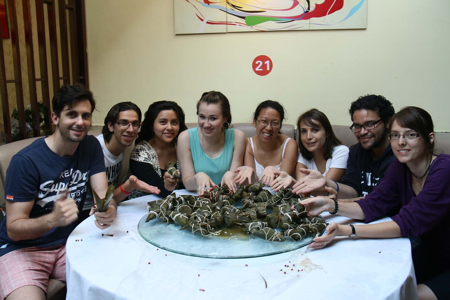 为了让孔子学院奖学金生更好地了解中国传统节日——端午节,2014年6月5日下午上外国交学院组织孔子学院奖学金生一起来到饭店包粽子体验端午节。