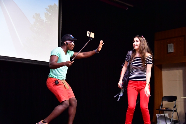 本次比赛共分为自我介绍、快速答题、表演与常规答题等环节。在自我介绍环节,留学生们纷纷大展才艺:保罗客串主持人表演了自创中文歌曲,李书豪以口琴伴奏为卜玉尘的传统乌克兰舞蹈增光添彩。在表演环节,留学生们以自身特色展现了“新上海人”对于外国人的热心帮助,标准流利的中文,风趣幽默的对话以及生动有趣的表演引得台下掌声不断。