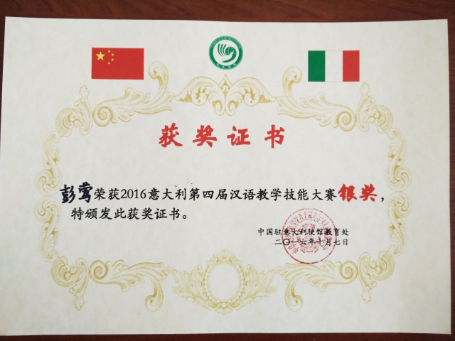 2016年10月7日上午,为期两天的第四届意大利暨圣马力诺汉语教学技能大赛在意大利都灵大学孔子学院顺利落下帷幕。在那不勒斯东方大学孔子学院任教的国交学院教师彭莺老师荣获A组银奖。