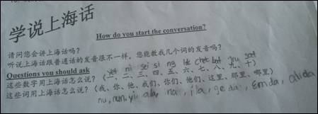学生们一边听,一边或记音或录音。一上午的采访过后,他们嘴里咕哝起了“阿拉”、“拿”、“伊拉”,切身感受到了上海话与普通话的差别。