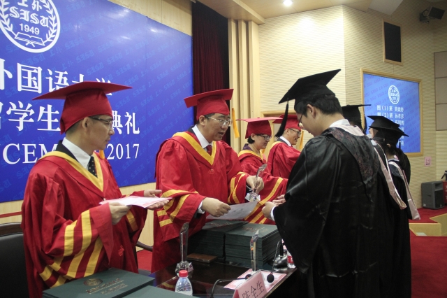 2017年6月9日上午,上海外国语大学国际文化交流学院本科留学生毕业典礼在第一报告厅隆重举行。上海外国语大学副校长杨力教授、国际文化交流学院张艳莉院长、陈全生书记、葛起超副院长、鹿钦佞副院长及毕业班教师出席了本次毕业典礼。不少毕业生家长也不远万里,从世界各地赶来,与毕业生们一起分享孩子学有所成的喜悦。
