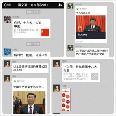 10月18日上午,中国共产党第十九次全国代表大会在人民大会堂开幕,习近平总书记代表第十八届中央委员会向大会作报告。上午9:00,国交学院党政领导和党员群众代表共同收看十九大开幕会直播。18日下午国交学院教工第一支部召开“我学十九大”专题组织生活会,广大党员畅谈体会,抒发情感,迅速掀起学习十九大报告热潮。