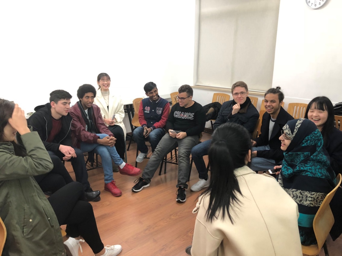 活动开始时,主持人王晓旭和活动负责人黄梦媛首先让同学们轮流做了自我介绍,锻炼了留学生的口语表达能力。通过介绍我们了解到:有的同学热爱上海的国际性和包容性,有的同学热爱中国悠久的历史,还有同学想要成为汉学家,做真正的“中国通。”这样的介绍使大家认识到,正是因为彼此对汉语的热爱,有了共同前进的目标,才相聚到上海外国语大学。