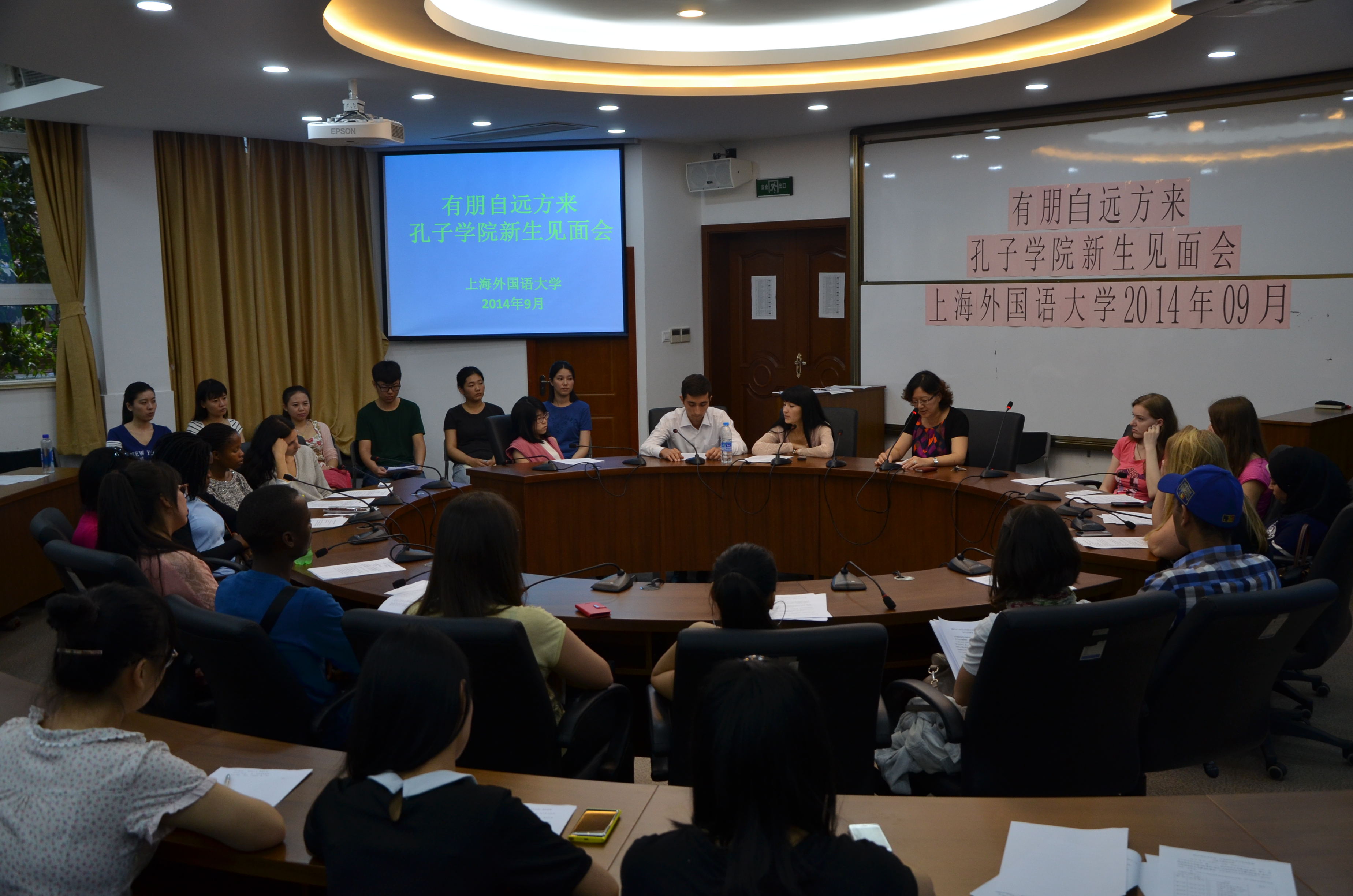 9月27号下午,上海外国语大学2014年孔子学院奖学金新生见面会在国际文化交流学院一楼阶梯教室隆重举行。国际文化交流学院长张艳莉、副院长郑振贤、葛起超等院领导和部分教师代表出席此次见面会。见面会由郑振贤主持。