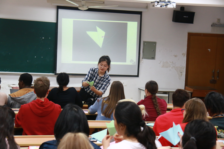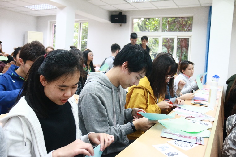 这是国际文化交流学院新学期中外文化体验系列活动的开篇活动。该活动主要面向孔子学院奖学金新生,本学期还将有包括中国乐器、中国古镇、中国刺绣艺术、中国武术、中国书法等其他带有中国特色的相关主题呈现给学生,让大家在不同的主题中交流、实践,进一步了解中国文化。