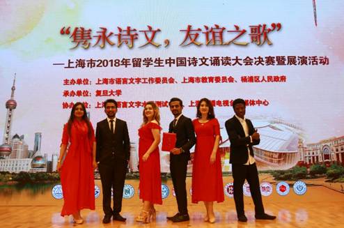 11月18日,上海外国语大学国际文化交流学院留学生代表上海外国语大学参加了在复旦大学江湾校区举办的“隽永诗文,友谊之歌”上海市2018年留学生中国诗文诵读大会决赛及展演活动。此次大赛由复旦大学承办,有来自上海的复旦大学、上海交通大学、华东师范大学、上海外国语大学等12所上海高校的18个节目入围最后的决赛及展演环节。