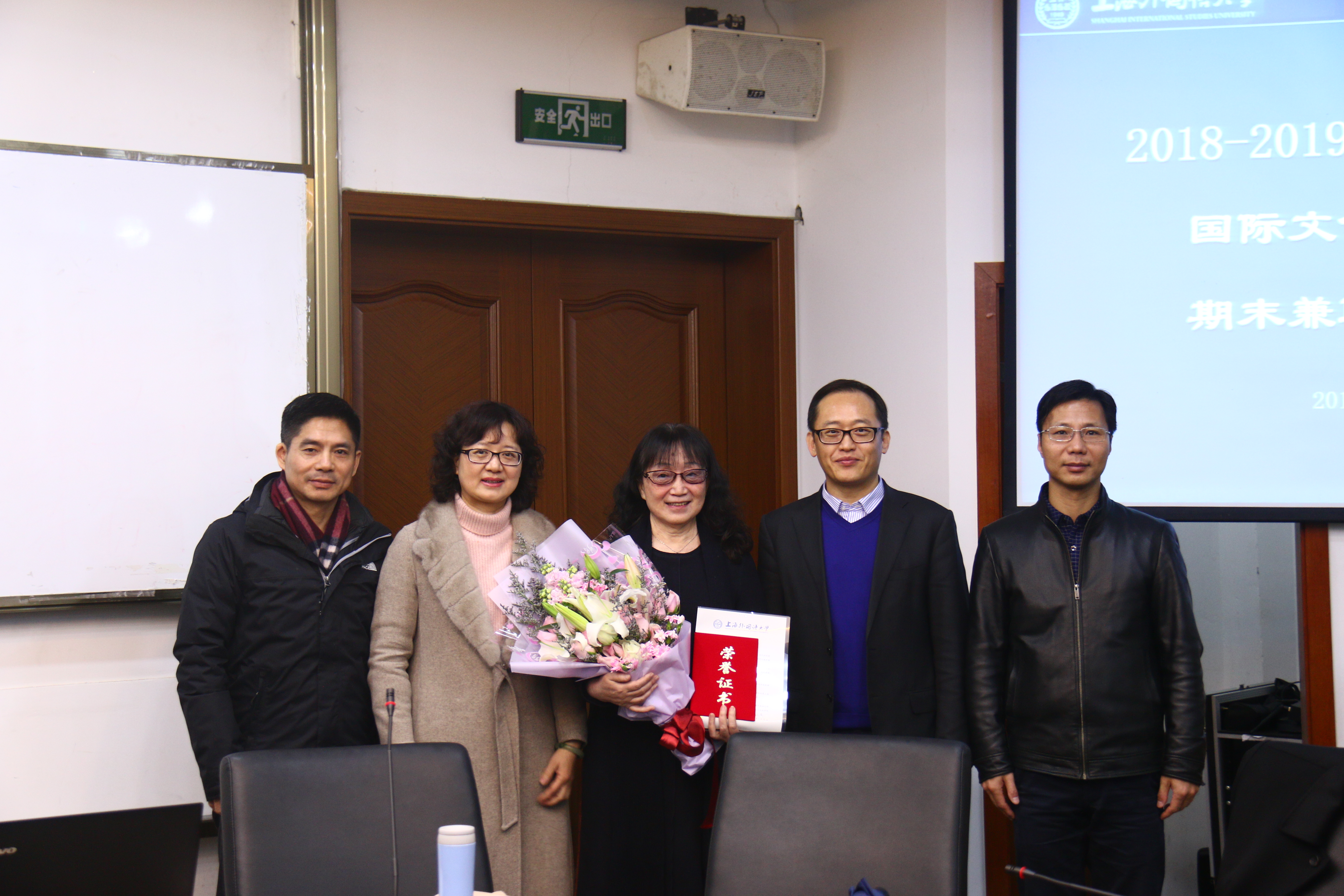 会上,张艳莉院长首先对过去一年学院的留学生招生情况、留学生管理和教学情况、学院科研学科建设、研究生培养及人才队伍建设、教学硬件设施的完善工程等方面进行了全面而简要的回顾,并总结了工作中的亮点与不足,为今后的工作提出更高的期望。之后,张院长特别感谢了兼职教师们对学院教学工作的支持,充分肯定了教师们的辛勤工作,并为退休教师包国芳老师颁发感谢信,感谢包老师15年来为学院教学等各项工作的付出,同时代表学院赠送鲜花和美好的祝福。
