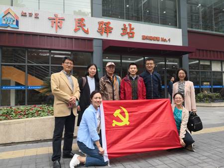 4月19日下午,国交学院教工一支部走进嘉兴路街道市民驿站第一分站,深入了解社区便民服务,认真学习社区党建成果,交流探讨互建项目,开展了一次生动的主题党日活动。