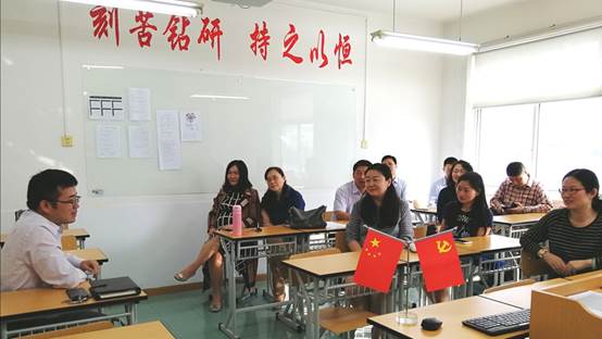 此次活动中,副院长朱建军教授作为领导班子成员,结合个人成长经历为大家讲述了新中国改革发展变化历程,发言中多个接地气的实例引发阵阵会心的笑声。多位党员老师也回顾了在海外的亲身经历,以及与外国留学生交流过程中的趣事,不禁令人感慨民族复兴、中华崛起的艰辛与自豪!最后,大家分享了在“学习强国APP”上的新鲜资讯、精美视频及实用慕课,讨论如何把这些优质资源巧妙应用到对外教学和交流中去,为讲好中国故事、展现文化自信开创新思路。