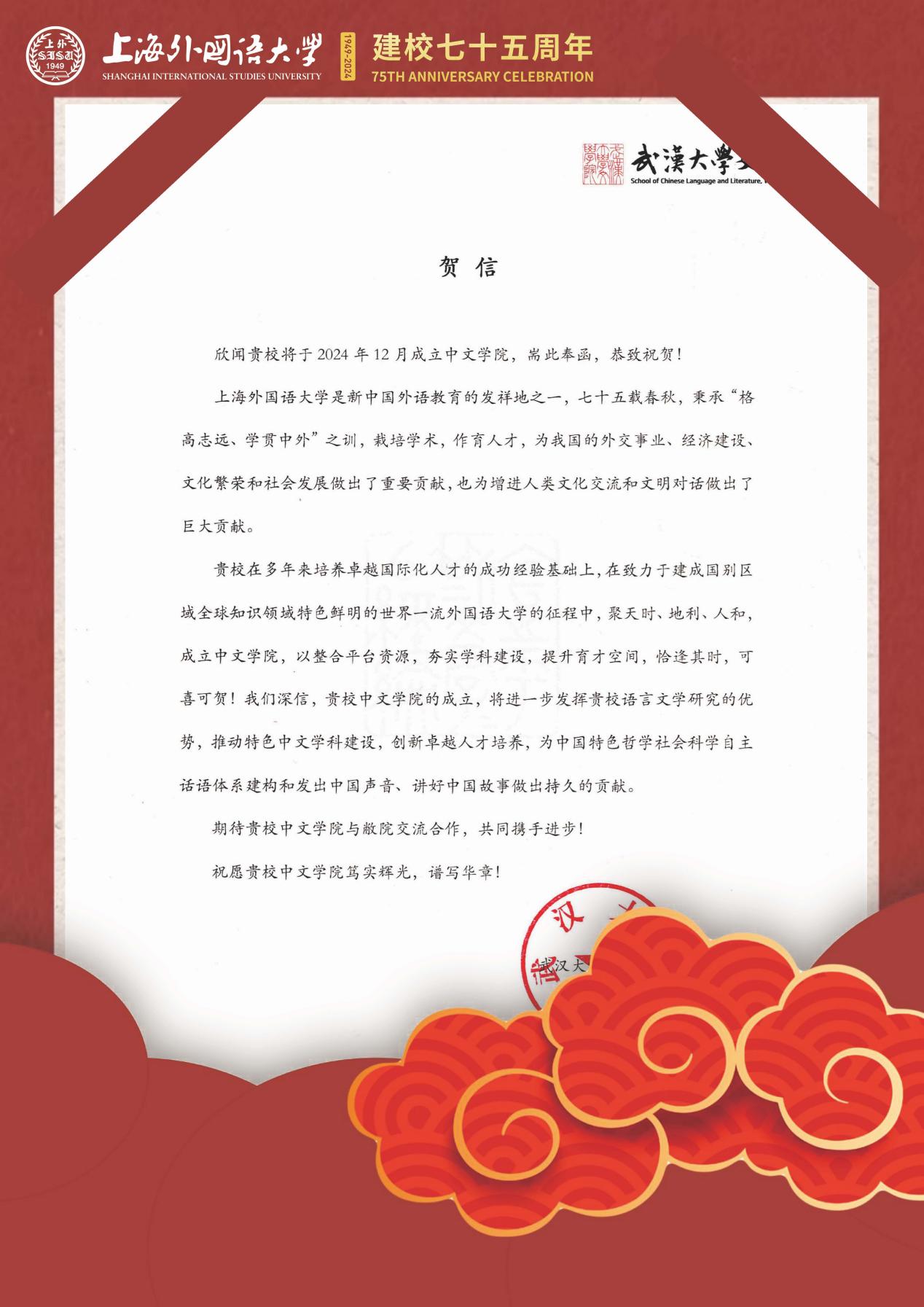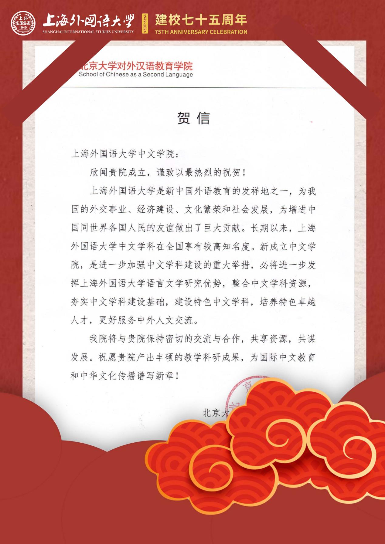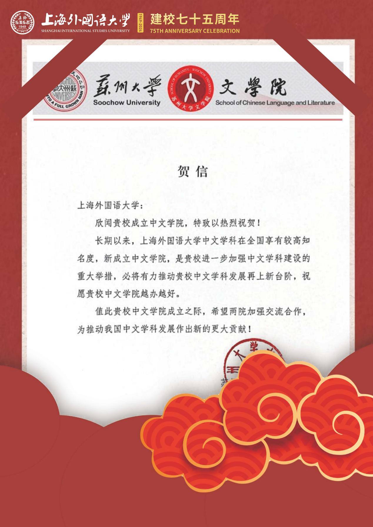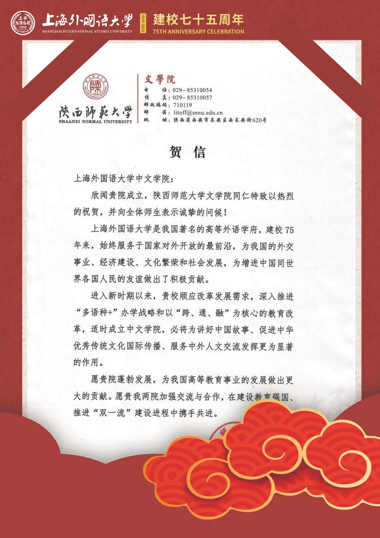学院共收到32封来自全国各地兄弟院校的贺信