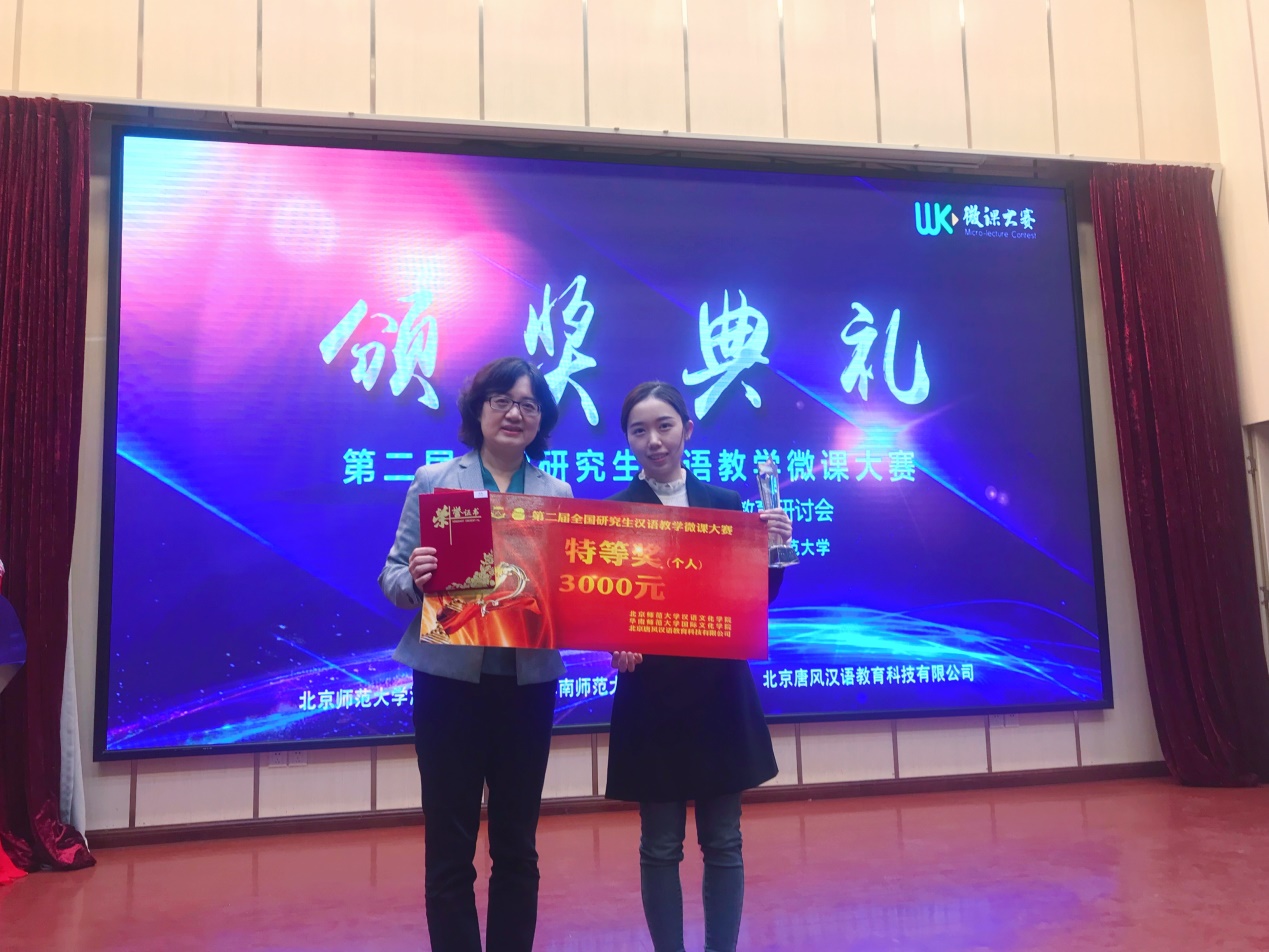 2019年12月21日,教育信息化背景下的国际中文教育研讨会暨第二届全国研究生汉语教学微课大赛颁奖典礼在广州华南师范大学隆重举行,张艳莉院长和19级研究生张楚代表学院参加了此次颁奖典礼。至此,第二届全国研究生汉语教学微课大赛圆满落幕。
