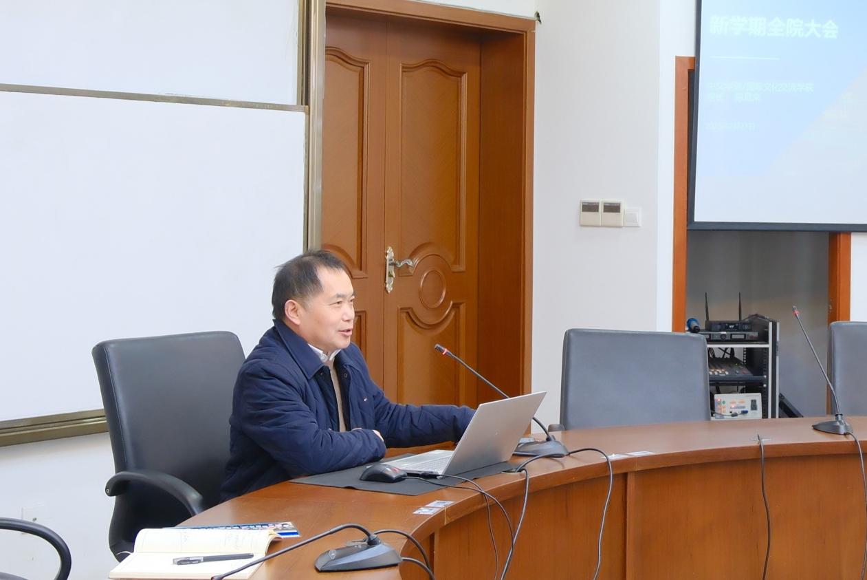 2月21日,中文学院/国际文化交流学院新学期全院大会在虹口校区召开,学院全体教职员工参会。