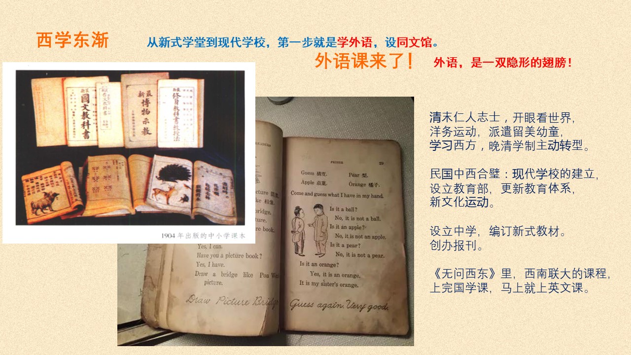 讲近现代教育史,学外语的重要性,这也是我们外语大学的初心,学外国语,做爱国人!