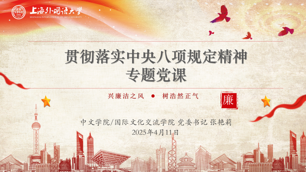 党建群团 | 严守八项规定,共护学府清风——上海外国语大学中文学院/国际文化交流学院开展贯彻落实中央八项规定精神专题党课​