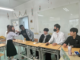 精心设计组织的游戏环节更是将活动推向了高潮。 如“传话游戏”,给出一句完整的话后,让留学生一个接一个地向后传,最后一人说出正确的句子即获胜并得到一份小礼物。留学生积极参与,兴趣浓烈,提出用“韩语”、“英语”传话的互动请求。“击鼓传花”演绎中国传统酒桌文化“曲觞流水”,每个留学生说一个中国的城市、中国的美食或造一个完整的句子。整个环节气氛活跃,让留学生体验了游戏的快乐,同时也领略了中国语言的魅力。在欢声笑语中,留学生不仅补充上课所学,了解了更多有关中国的知识,也促进了汉语听说能力,激发了学习热情。