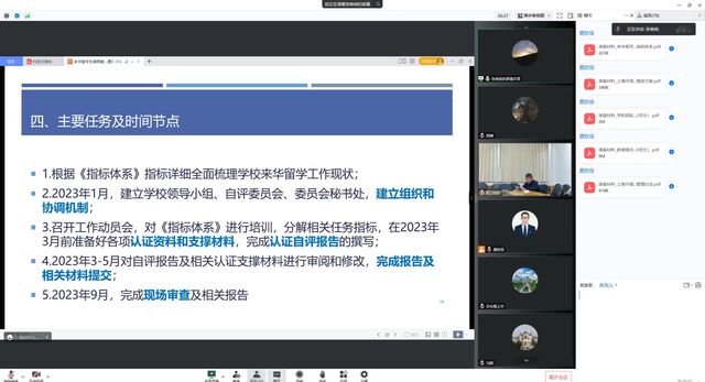 会议最后,衣永刚副校长从工作背景、工作任务和工作要求上做了深入的动员并提出工作要求。衣永刚指出,再认证工作不仅仅是一项来华留学工作,更要把这项工作放在党的二十大开局之年这一时代背景下来看,加快建设教育强国、培育教育自信、扩大高水平的教育开放要求我们务必做好来华留学工作。我们要将再认证工作和学校“双一流”建设及十四五规划统筹规划,建立上外来华留学领域的新标准。在后疫情时代,学校要以高质量的来华留学项目吸引国际学生来学校学习。衣永刚强调,此次再认证工作应整体谋划,系统考虑,各部门应高度重视,确立标杆,凝练特色,突出亮点,找准短板,弥补不足。各部门应当密切配合,加强协调。认证秘书处要做好整合工作,仔细打磨,拿出高质量的报告和支撑材料,尽全力完成再认证工作。