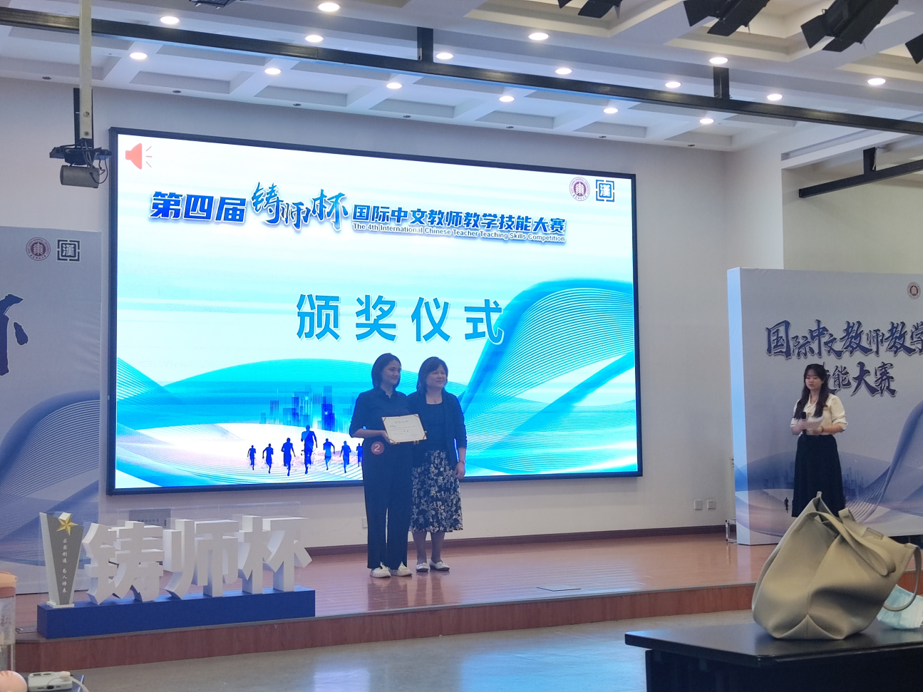 经过激烈的竞争角逐,刘诗绮同学获得中国学生组一等奖,粱崔炜同学和王乃曈同学获得中国学生组三等奖,慈梦璐(泰国)获得国际学生组一等奖,何氏红绒(越南)获得国际学生组三等奖。同时,刘诗绮同学还在现场投票中胜出,荣获“最佳风采教师奖”。