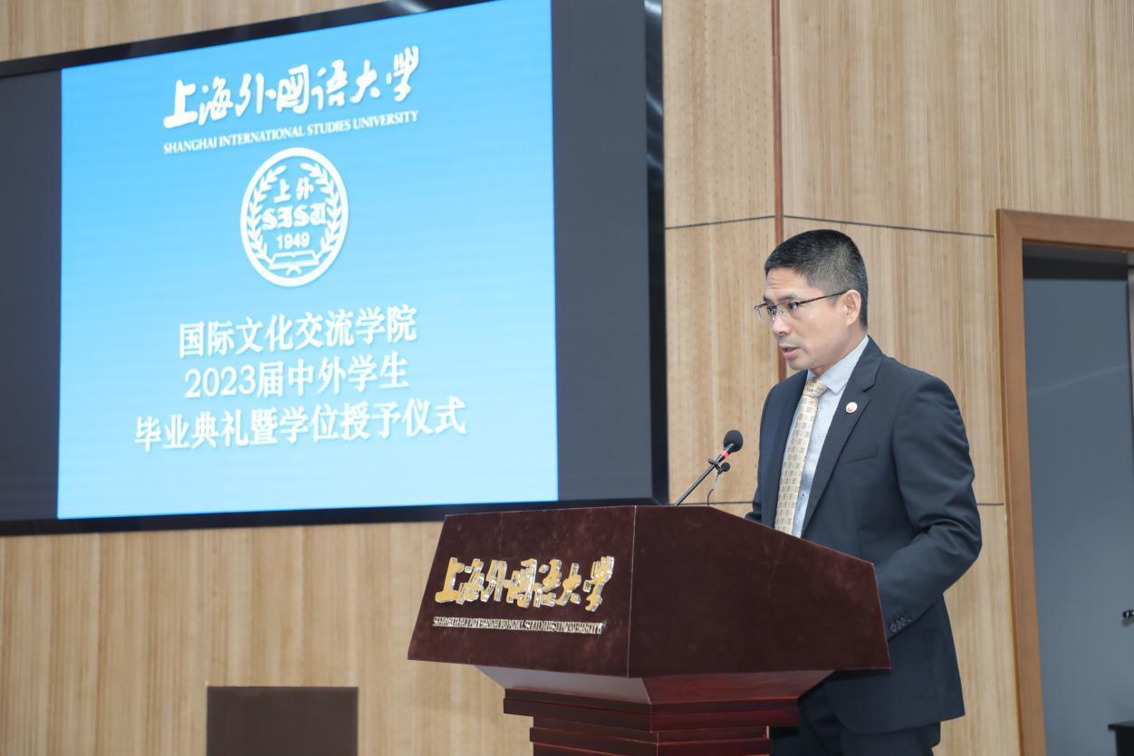 上海外国语大学国际文化交流学院2023届中外学生毕业典礼暨学位授予仪式在掌声与笑声中圆满落幕,毕业生们怀着对母校的眷恋、对未来的憧憬,走向新的人生舞台。